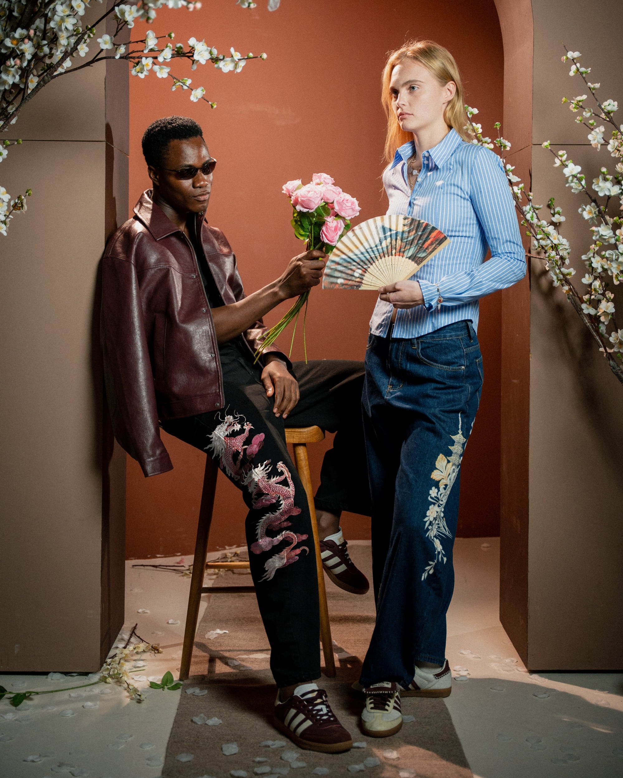 - Japanese-inspired hand-drawn artwork